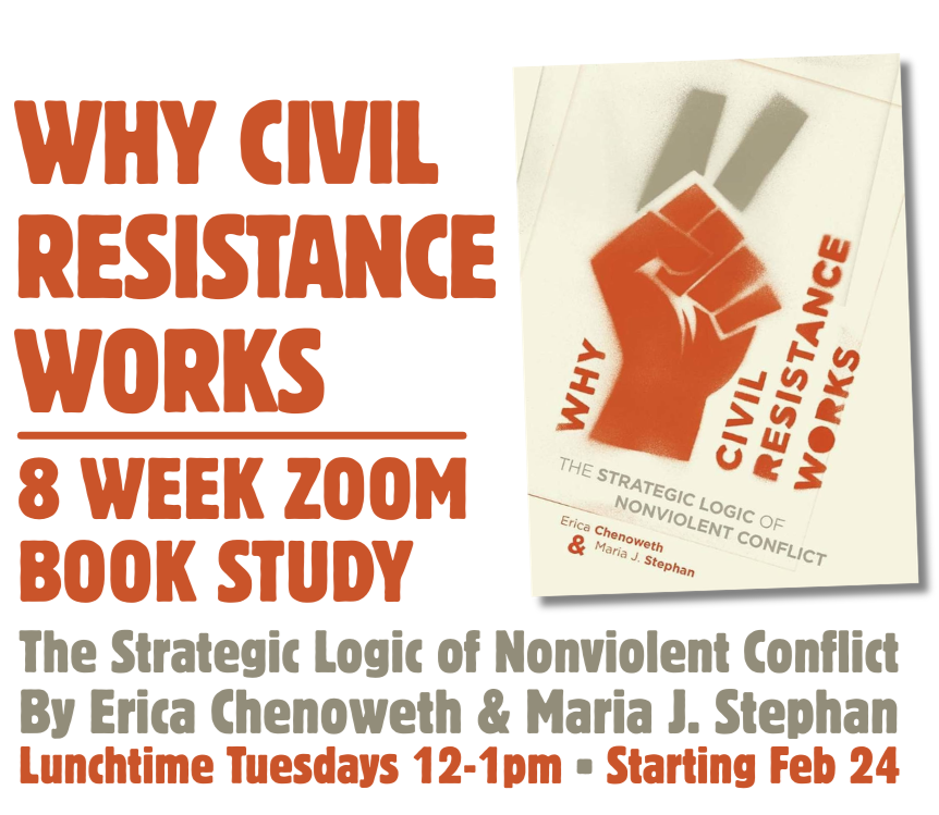 You are invited to join an 8-week Zoom Book Study led by Rev. Kayla Bonewell (Cathedral of Hope UCC & Church of the Open Arms UCC) on Tuesdays from 12-1pm as we study a book recommended by Minneapolis organizers, Why Civil Resistance Works by Erica Chenoweth and Maria Stephan.